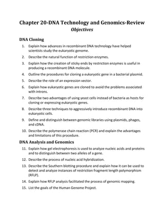 DNA Technology and Genomics Guided Reading Activities Big idea. Web Chapter 12. Gene cloning Answer the following questions as you read modules 121125.